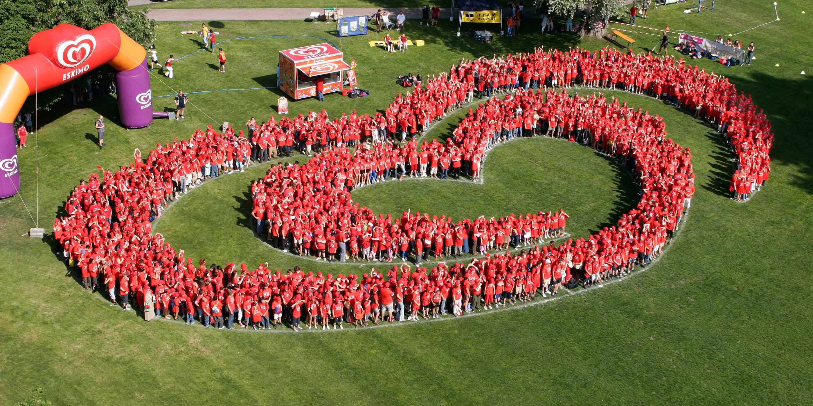 Beim zweiten Mal hat es geklappt! Wir haben den Schulschluss-Event im Wiener Prater erneut genutzt und 1.305 Schüler und Schülerinnen das berühmte Eskimo-Herz formen lassen. Das Ergebnis: Ein Weltrekord mit Eintrag ins Guinness-Buch der Rekorde. Durch das Programm führten Edi Finger und Thomas Sykora. Die begeisterten SchülerInnen wurden mit Eis, Fotos und einem nachträglichen Erinnerungs-Poster belohnt.