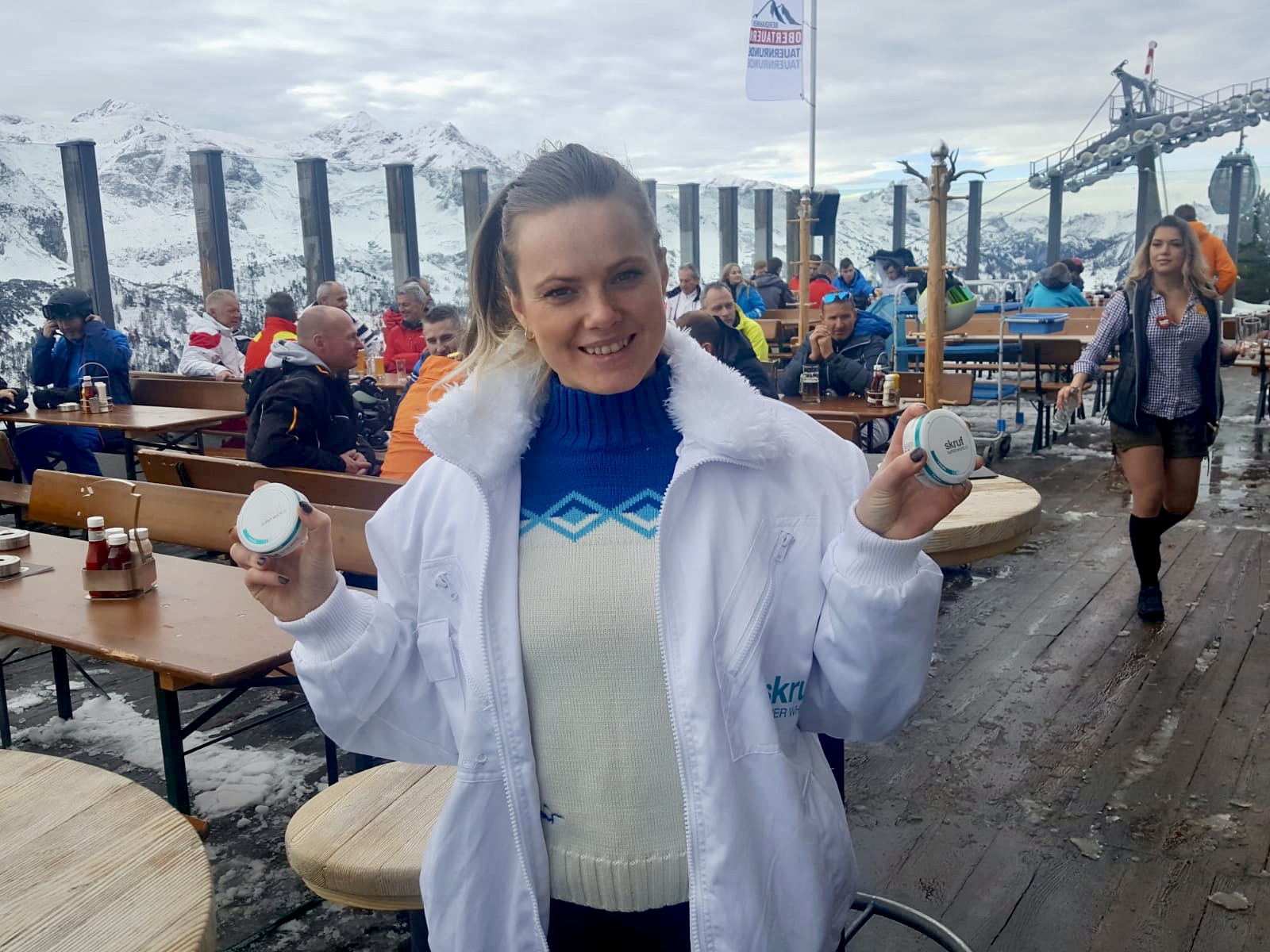 Wir bringen den nordischen Kick nach Österreich! Ausgewählte Après-Ski Hütten & Locations in ganz Österreich wurden im Winter mit SKRUF Superwhite beliefert. Unser zweiköpfiges Promoteam, unübersehbar durch den fetten skruf Jeep, nutzte die Besuche, um B2B Kontakte in der Almgastronomie zu knüpfen und zusätzlich die Gäste glücklich zu machen. „Einfach SKRUF Superwhite probieren und länger Skifahren oder Party machen“ hieß es – da griff sogar Robert Geiss gerne zu.